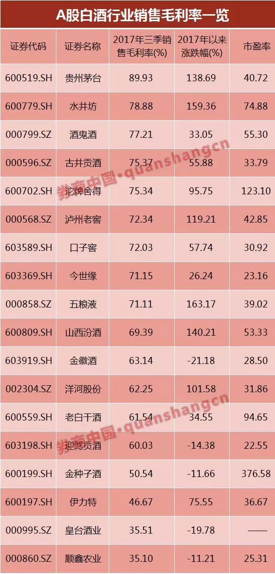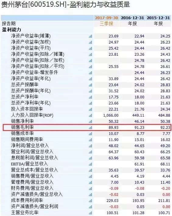 贵州茅台也是销售毛利率冠军