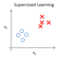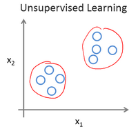 上面是监督学习,已经人为设置了属性(红叉,蓝圈)。
