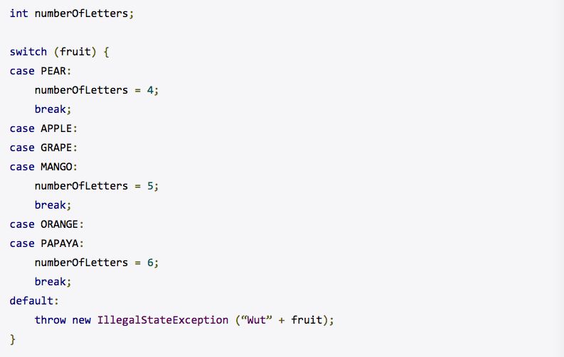 在Java 11中,switch语句追随C和C++,默认情况下使用fall-through语义。 虽然传统的控制流程在编写低级代码时很有用,但随着switch在更高级别的环境中采用,易出错会盖过其灵活性。