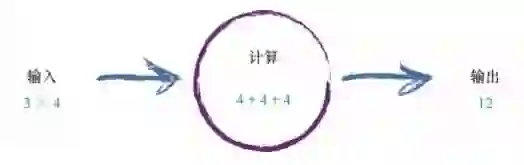 一台计算机接受了一些输入,执行了一些计算,然后弹出输出。下 列的内容详细说明了这一点。一台计算机对“3×4”的输入进行处理, 这种处理也许是将乘法运算转化为相对简单的一组加法,然后弹出答案 “12”。