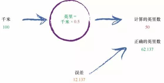 我们拥有的唯一其他的线索是,一些正确的千米/ 英里匹配的数 值对示例。这些示例就像用来验证科学理论的现实世界观察实验一样, 显示了世界的真实情况。