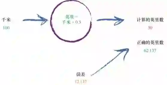 千米和英里之间的这种线性关系,为我们提供了这种神秘计算的线索, 即它的形式应该是“英里 =千米 ×C”,其中 C为常数。现在,我们还不知道这个常数 C是多少。