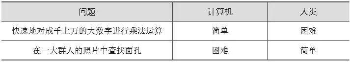 我们怀疑图像识别需要人类智能,而这是机器所缺乏的。无论我 们造出的机器多么复杂和强大,它们依然不是人类。但是,由于计算 机速度非常快,并且不知疲倦,我们恰恰希望计算机能更好地进行求 解图像识别这类问题。人工智能所探讨的一切问题就是解决这种类 型的难题。