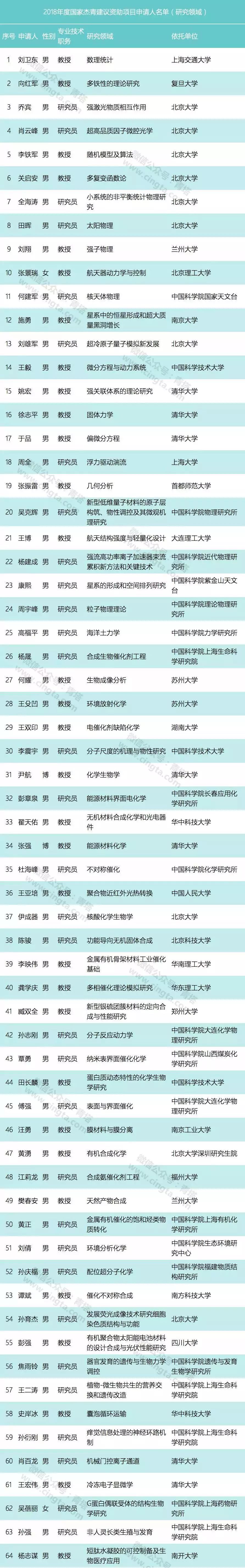 昨天,科技日报正式公布了国家自然科学基金委员会关于公布2018年度国家杰出青年科学基金建议资助项目申请人名单的通告,2018年国家杰青正式出炉。
