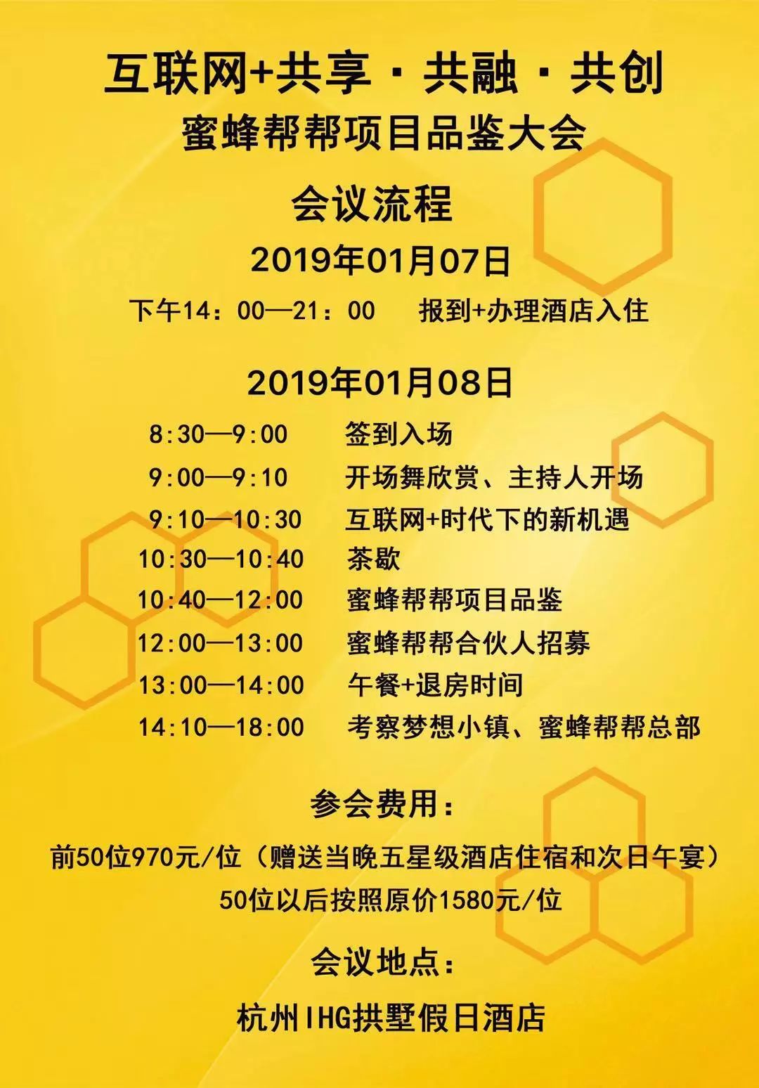 可参加2019年1月07-08日蜜蜂帮帮项目品鉴/暨合伙人招募会!