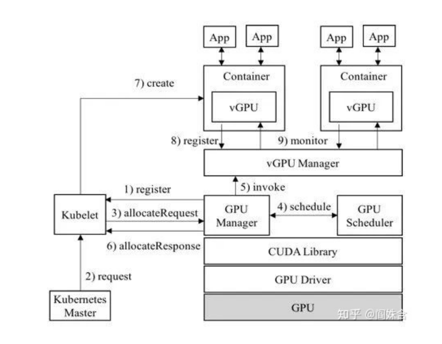 GaiaGPU也提供了Device plugin GPU manager[6]和调度器 GPU admission[7],GPU admission既允许用户申请一张虚拟卡,也允许用户像之前一样申请一机多卡,这可能可以满足一些小型集群的需要。GPU manager除实现了device plugin该实现的,也做了很多繁杂的功能,使得apiserver的负担更重了。
