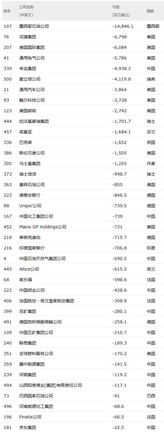 7月20日上午消息,《财富》昨日发布世界500强排行榜。在2018年世界500强亏损公司的子榜单中,墨西哥石油公司亏损148亿美元,成为亏损最多公司。爱立信、戴尔、诺基亚、联想集团、京东等科技企业也登上榜单。