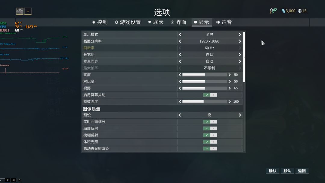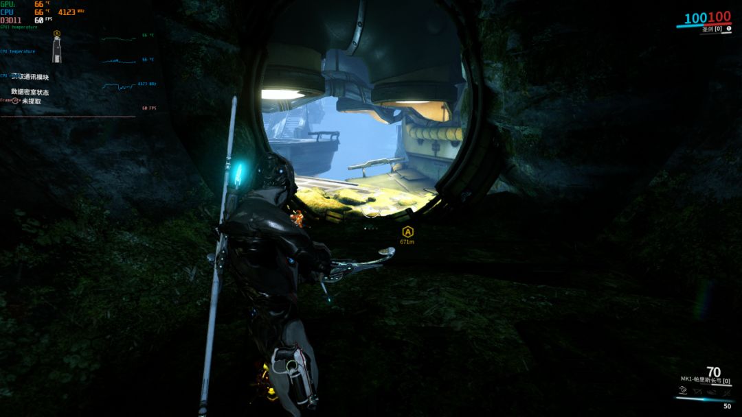 接着,再试试我之前在 PS4 上玩过一段时间的科幻类 FPS 网游——星际战甲,游戏画质调整为"高"。室内场景中,帧数维持在 55~60FPS,室外复杂场景中,帧数降低到 40FPS 左右。如果要求不是很高的话,这样的帧数表现基本上也不会太影响游戏体验。
