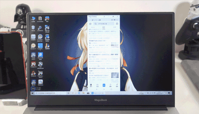 目前新出的这几款荣耀笔记本,最让大家称道的应该就是多屏协同功能了。荣耀笔记本14 自然也不会缺席这个功能。多屏协同让笔记本电脑和手机融为一体,它不只是将手机画面投放到电脑窗口上那么简单。你可以利用鼠标和键盘,在屏幕窗口上尽情地操控手机,完成大部分手机功能。