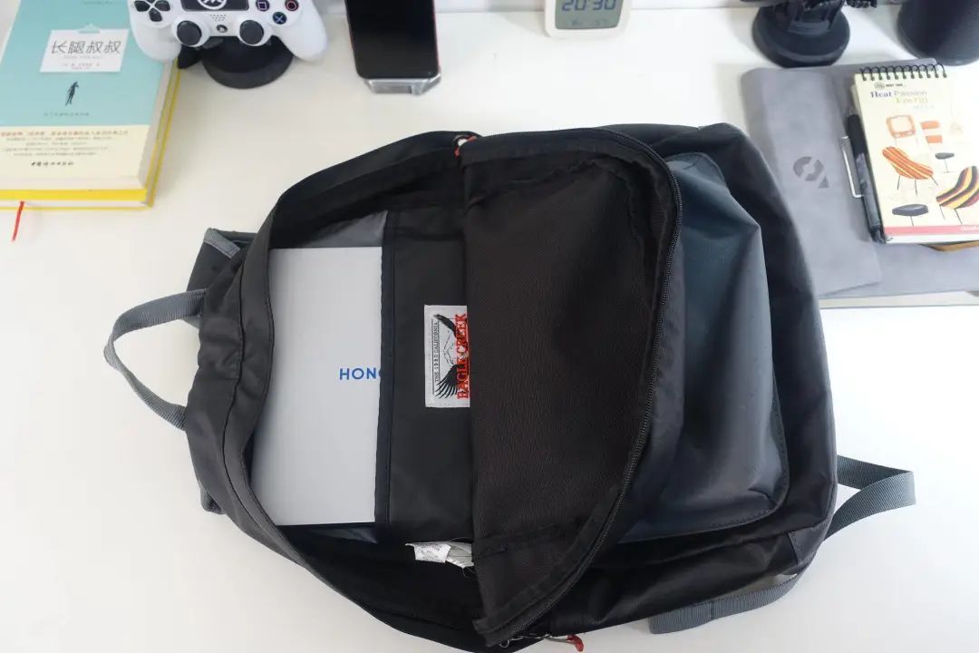 笔记本的重量控制得也很不错,作为一款 14 英寸的笔记本,1.38kg 的重量在同类型笔记本里面也算比较优秀的。轻薄的机身自然可以带来更好的便携性,将荣耀笔记本 14 塞入日常通勤的书包里毫无压力,携带起来也不会觉得很重。