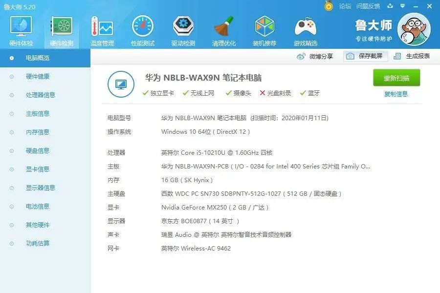 CPU 升级的荣耀笔记本 14 性能表现如何,应该是很多用户关心的问题。我这台荣耀笔记本 14 的配置为 i5-10210U CPU,16GB 内存,GeForce MX250 独立显卡,512GB 固态硬盘,下面就来分析一下它的性能表现。