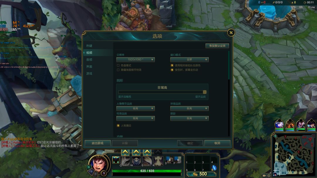 首先是英雄联盟,这款游戏对硬件配置的要求不算高,将游戏画质调整为"非常高"。在同屏人数较少时,帧数基本维持在 140FPS 左右。最终决战同屏人数达到最大值,帧数也能维持在 100FPS 以上。最高画质下流畅游玩这款游戏毫无压力。