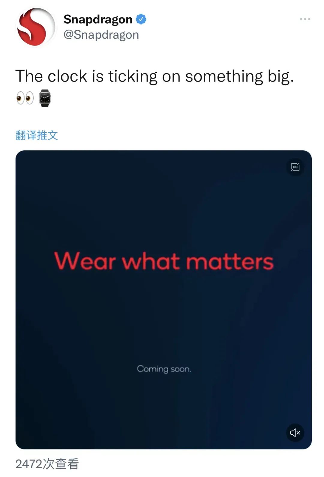 今日,高通骁龙官方在推特发文表示即将推出下一代可穿戴 SoC。虽然目前还无法确认新款 Snapdragon Wear 处理器的细节信息,但此前有消息指称高通将推出新款 Snapdragon Wear 5100 系列芯片。