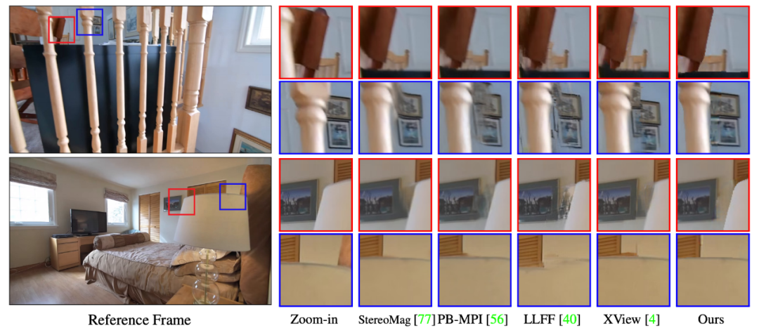 首先,我们来看新方法与当前最优的视角合成在视觉效果上的对比结果: