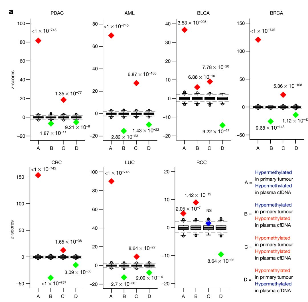 2018年11月15日,国际顶级学术期刊Nature发表了一项液体活检最新重磅研究成果。来自加拿大玛格丽特公主癌症中心及多伦多大学的研究团队开发了一种基于免疫共沉淀的新型高通量cfDNA甲基化测序技术,名为甲基化cfDNA免疫共沉淀测序(cfMeDIP-seq)。该技术仅需几纳克DNA就能高灵敏度地检测cfDNA的甲基化特征,帮助研究人员早期发现癌症,还能鉴别不同癌症类型特有的DNA甲基化特征。