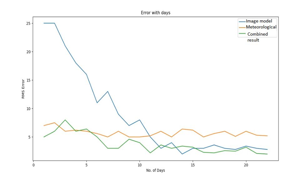 我们决定结合两个模型的结果,其中一个是基于图像的模型,一个是使用气象参数的时间模型。在基于图像的机器学习模型进行训练时,使用气象参数的时间模型有助于实现更高的推理精度,为用户提供一定结果。而基于图像的机器学习模型帮助我们为特定用户自定义模型;从而通过减少估计误差,提高推理精度。