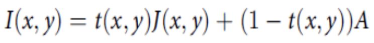 其中 I 是观察到的模糊图像,t 是从场景到相机的传输,J 是场景亮度,A 是 airlight 颜色矢量。