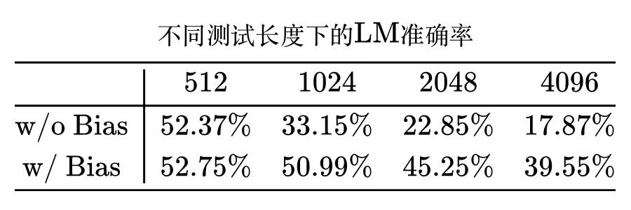 可以看到,Bias 项确实不怎么影响训练效果(512长度),但却在长度外推性上面明显拉开了差距,看似毫无存在感的 Bias 项居然有此神奇作用!当然,要是重跑几次实验,外推性的结果可能会有明显的波动,毕竟长度外推性属于“赠送功能”,并不是我们主动触发的。