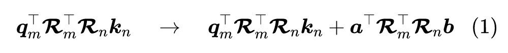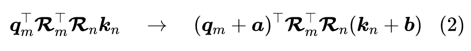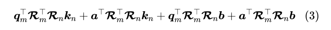 无关,但从式(3)我们就知道,经过 RoPE 后,