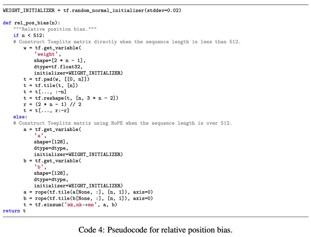 时,发现了之前没有在意的一个“隐藏彩蛋”——加性相对位置编码,其伪代码为: