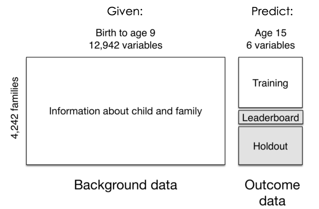 流程是这样:先通过深入访谈和家庭观察收集大量孩子及其家庭的数据。然后,用这些数据训练预测模型。输入的变量有近13000个,输出结果将预测这些孩子在15岁时6种表现。