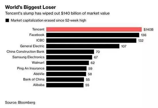 腾讯才是股价最大的loser。半年时间,腾讯股价比今年1月底创下的高点跌了26.6%,市值蒸发12000亿港元。