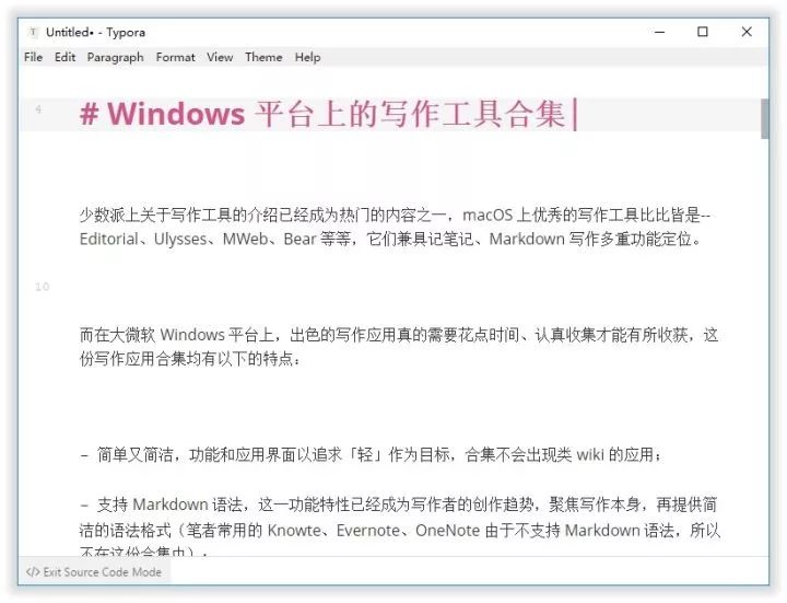 Windows 上支持 Markdown 的写作软件寥寥无几,Typora 是一款界面简洁同时功能强大的 Markdown 写作工具。