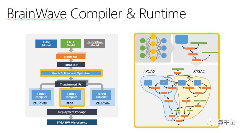 此外,Brainwave内置一个支持各种流行的深度学习框架的软件栈,目前Microsoft Cognitive Toolkit(CNTK)、Tensorflow均已兼容,微软计划支持更多框架。