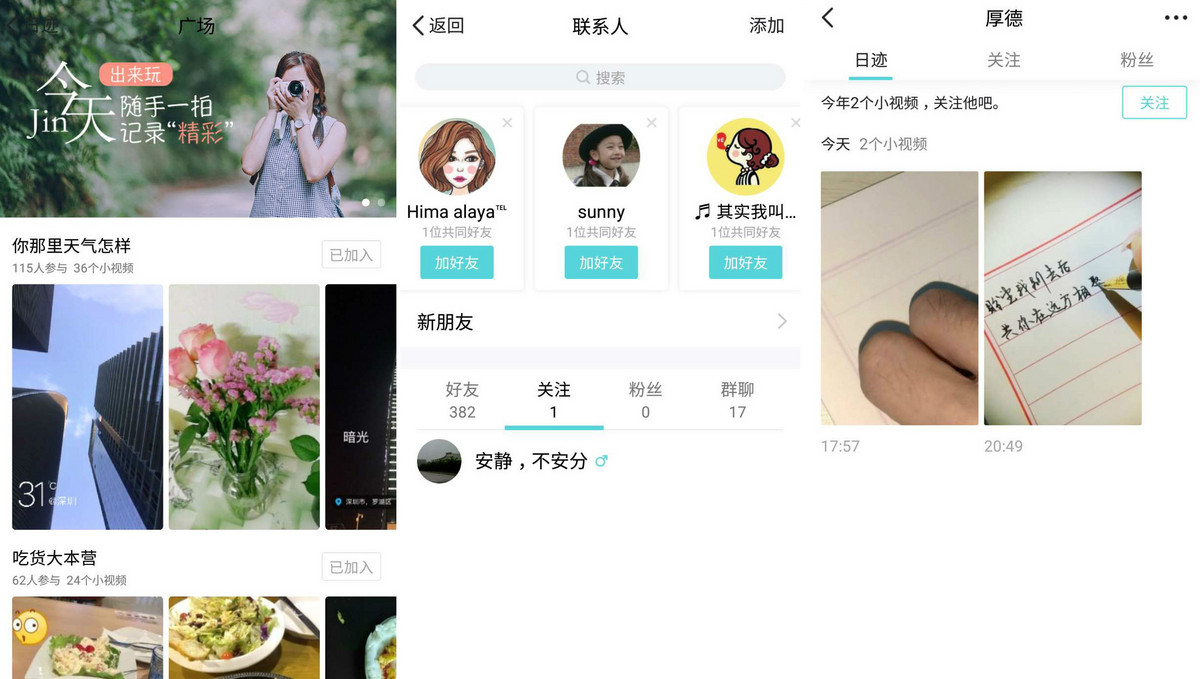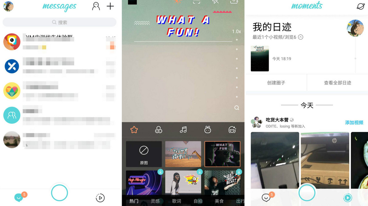 第一是基本的 IM 聊天功能,只不过更鼓励发一段视频来表达自我;