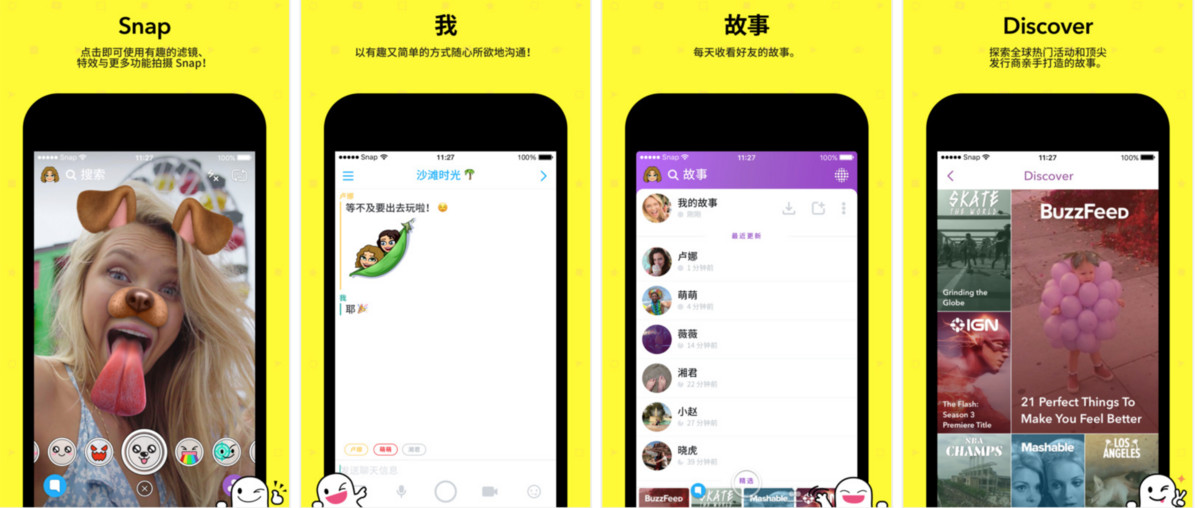 第三个是 Discover 发现功能,你可以理解为 Snapchat 的微信公众号,主要是交给媒体来生产内容,但是内容同样是一天可见。
