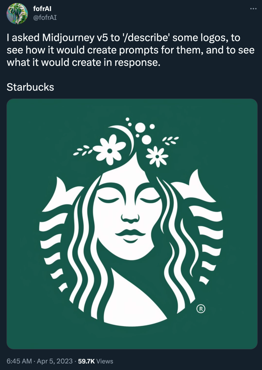 还有人想到,可以用 /describe 来进行品牌 logo 的升级。如此一来,既可以延续此前的品牌辨识度,又带来了全新的形象。