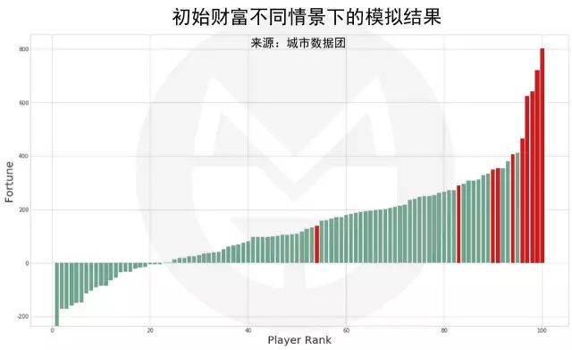 在真实社会中,每个人的起点其实并不相同。总有一些富二代、富三代,在财富游戏的开始就占尽了便宜。这一点也应该被考虑到我们的模型中。
