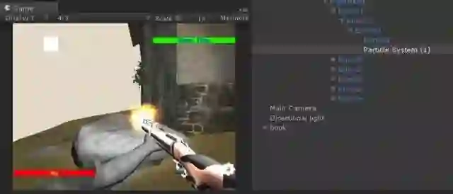 首先导入枪支模型,为了增加真实性。在枪口位置设置一个子物体,其子物体展示粒子效果(GameObject——ParticleSystem)其粒子效果充当火焰特效。
