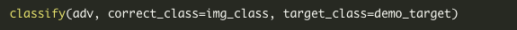 最后,准备合成一个对抗样本。我们任意选择“鳄梨酱”(imagenet class 924)作为我们的目标类。
