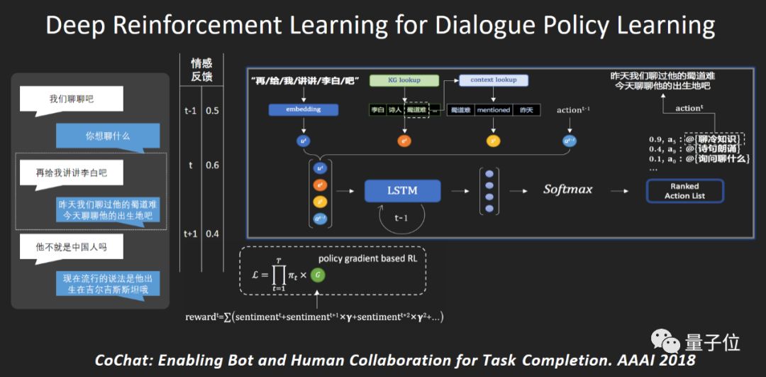 更具体来说,智能聊天是用深度强化学习来学习对话策略的,因为不是精度要求非常高的任务完成。