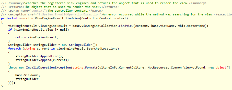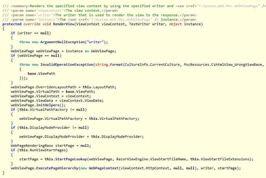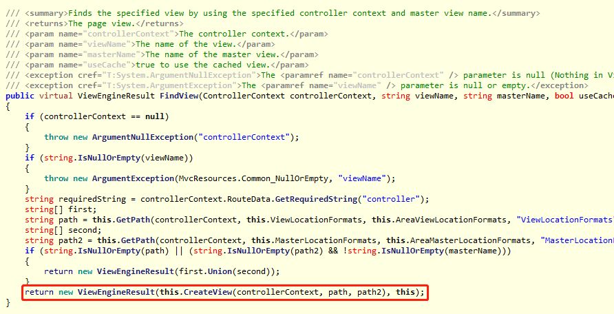 MVC中主要使用的是RazorViewEngine,下图是RazorViewEngine的部分代码: