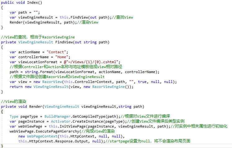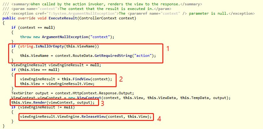 从代码中可以容易的看出,ASP.NET MVC中View的渲染工作主要有四步: