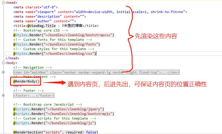 在Html中以@符号开始的内容将会被识别为服务器代码,而Razor将识别这些代码将其渲染为Html代码。