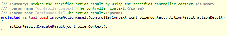 Action方法是由ActionInvoker完成执行的,Action返回的结果是一个ActionResult类型,Action执行后ActionInvoker又调用了ActionResult的ExecuteResult方法完成特定的操作,相关代码如下所示:
