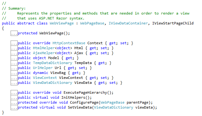 上面提到View文件编译后是一个WebViewPage对象,而View的渲染也是由该对象完成的,那么WebViewPage是什么?下图是WebViewPage的定义: