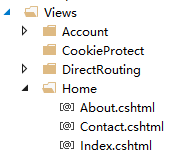 在ASP.NET MVC中View文件一般放置在项目根目录的Views目录下,以Controller名称为子目录,每一个子目录下保存了以action方法名称命名的View文件: