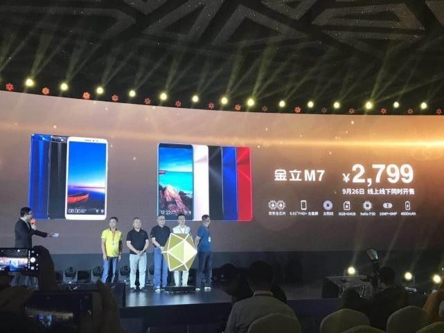 售价方面,金立M7定在了2799元,9月26日线上、线下同步开售。