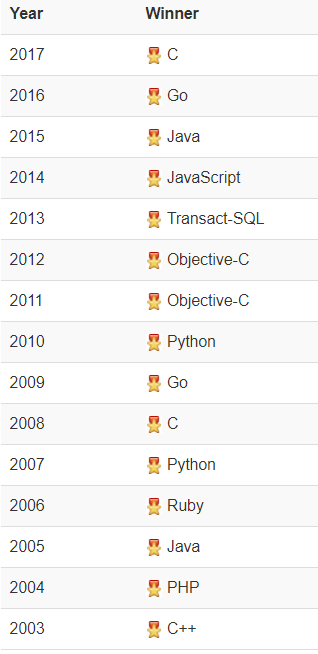 编程语言“名人榜”( 2003-2017)