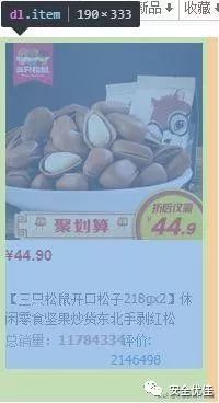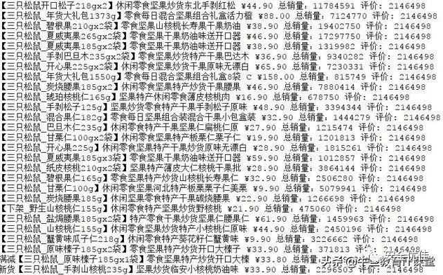 以某宝某只松鼠店铺为例爬取”坚果炒货”的商品名称、价格、销量以及评论数量