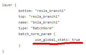 因此,对于随机初始化训练BatchNorm层,只需要在Proto文件中移除use_global_stats参数即可,Caffe会根据当前的Phase(TRAIN或者TEST)自动去设置use_global_stats的值。