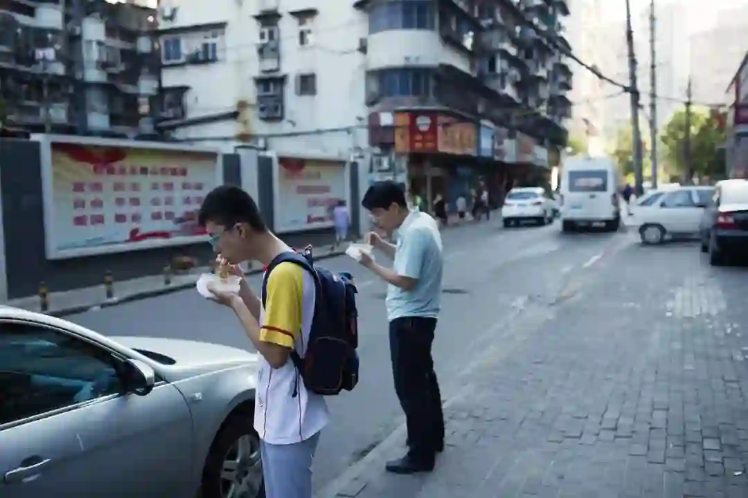 ▲汉口南京路,提着热干面豆浆赶着回家吃的孩子