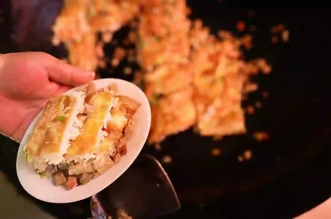 对外地人来说,刚开始吃热干面嘴里容易干渴,能让所有人一致达成热爱的反倒是豆皮。糯米软绵口感加上鸡蛋皮的香味,辅以香菇牛肉豆腐干等在热锅里煎制,待汁水浸入糯米中时,肉香米也香。毛主席来武汉,每次都要点豆皮吃,在巡视三峡的游轮上,也把老通城的豆皮师傅一并带上了。令人遗憾的是,如今在武汉早餐界有点名气的豆皮师傅,大多是当年老通城班底里留下的渊源,豆皮制作工艺复杂,面对一口高温铁锅繁琐操作,一天下来十分劳累,而豆皮本身也卖不上来价格,只能维持在六至八元左右,消费者似乎也不愿意为此多买单,因为传统豆皮里的肉并不多。比起过去,如今武汉的传统豆皮店少了很多。