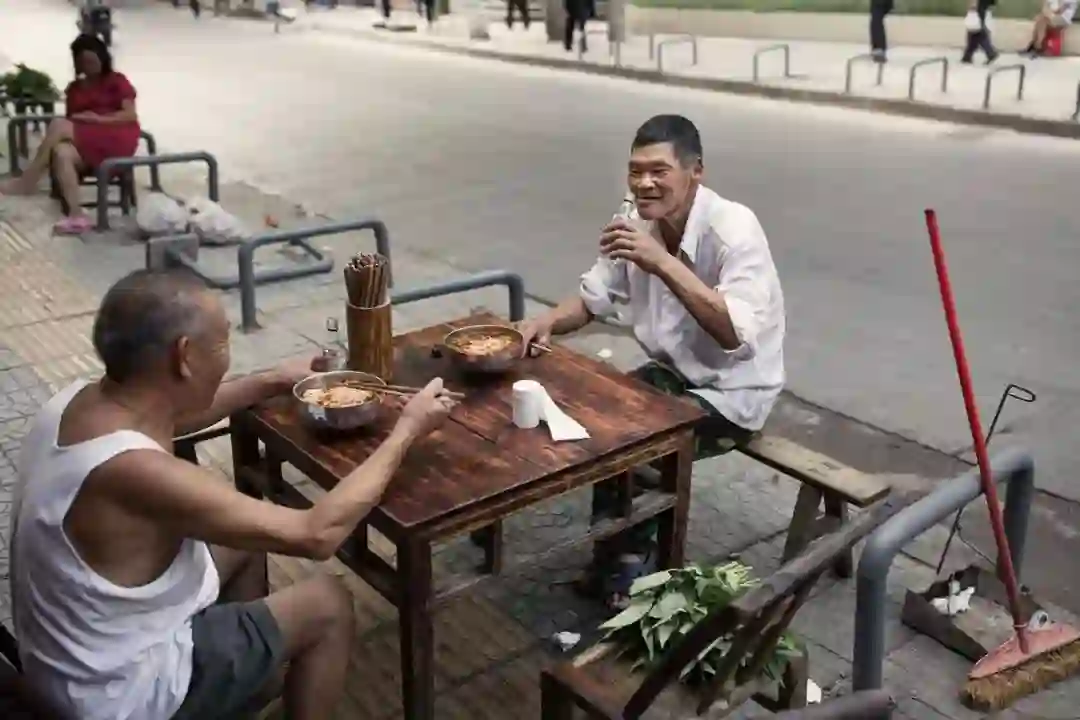 ▲中老年人上街喝早酒,一顿早餐吃上两小时也不稀奇