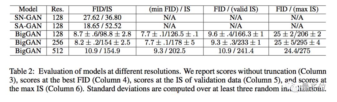 在计算机图像研究史上,BigGAN的效果比前人进步了一大截。比如在ImageNet上进行128×128分辨率的训练后,它的Inception Score(IS)得分166.3,是之前最佳得分52.52分3倍。