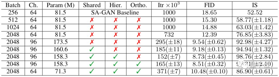因为不止是模型参数多,训练规模也是有GAN以来最大的。它的参数是前人的2-4倍,批次大小是前人的8倍。